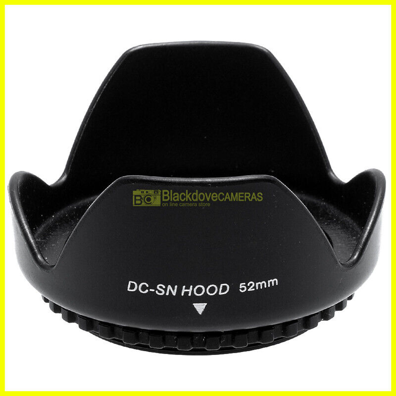 52mm. paraluce a corolla universale, innesto a vite. Ruotabile. Lens hood.
